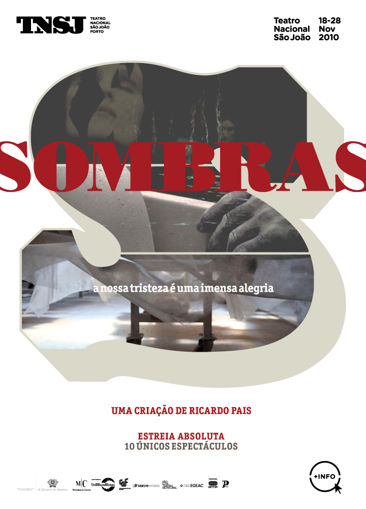 “A nossa alma é uma coisa concreta”, lia-se em 1994, num cartaz afixado nas ruas de Lisboa. Talvez o slogan de Fados – primeira incursão de Ricardo Pais no território do Fado – devesse ter sido guardado a sete chaves até agora, quando se anuncia a estreia absoluta de Sombras. Regresso do encenador ao TNSJ após dois anos de ausência, o espectáculo sonda – poderíamos dizer sonha – o modo de ser português, indagando lugares do nosso inconsciente mítico e da nossa personalidade histórica. “Portugal: questão que tenho comigo mesmo”, segundo a fórmula de Alexandre O’Neill. Tributo apaixonado às mais belas palavras escritas em português e dadas a ouver por Ricardo Pais no palco do TNSJ (António Ferreira, Garrett, Pessoa, Vieira, entre outros), Sombras faz-se também do Fado e da música, cuja fatalidade cénica nos foi dado descobrir em espectáculos tão sóbrios e exaltantes como Raízes Rurais. Paixões Urbanas (1997) e Cabelo Branco é Saudade (2005). Com uma equipa de excepção – na qual se contam Fabio Iaquone, Mário Laginha e Paulo Ribeiro, só para citar alguns –, estas Sombras irradiam a feliz luminosidade de uma síntese. Nelas se cruzam a Fala, o Canto e a Dança (também o Vídeo, no seu carácter simultaneamente especular e íntimo), artes e linguagens que Ricardo Pais foi industriosamente explorando ao longo do seu percurso artístico. Um espectáculo de variedades, uma criação transdisciplinar, ou… um projecto ricardopaisiano? A isto se dá também o nome de Teatro.